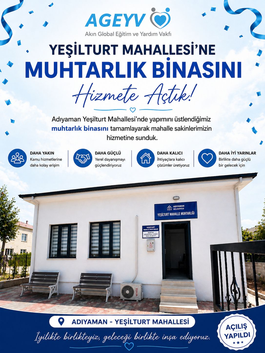Akın Global Eğitim ve Yardım Vakfı ( AGEYV ) olarak, Adıyaman'da okul öncesi eğitime destek vermek amacıyla hayata geçirdiğimiz kreşimizin açılışını gerçekleştirdik. Açılış törenimizde Adıyaman Belediye Başkanı Sayın Abdurrahman Tutdere, bu anlamlı yatırımı şehrimize kazandırdığı için kurucumuz Sayın Mustafa Kemal Akın'a teşekkürlerini ileterek bir plaket takdim etti.