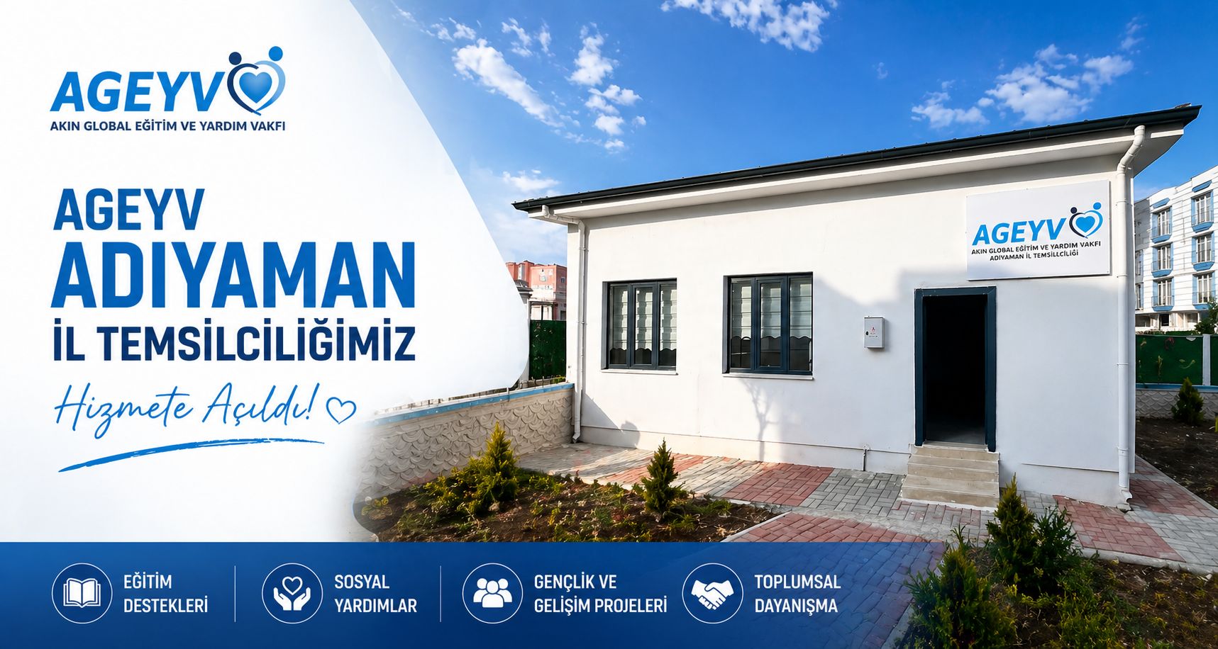 AGEYV olarak Adıyaman Yeşilyurt Mahallesi’nde yapımını üstlendiğimiz muhtarlık binasını tamamlayarak halkımızın hizmetine sunduk.